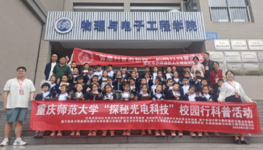 为激发青少年科学探索兴趣、提升科学素养,2026年4月14日,重庆师范大学物理与光电工程学院联合重庆市级人工智能科普基地、重庆市相关重点实验室及重庆物理学会,共同开展“智慧科普启新程”信息科技系列科普活动。重庆市树人小学45名一年级学生走进学院实验楼,沉浸式感受光电信息科技魅力,开启趣味科学探索之旅。