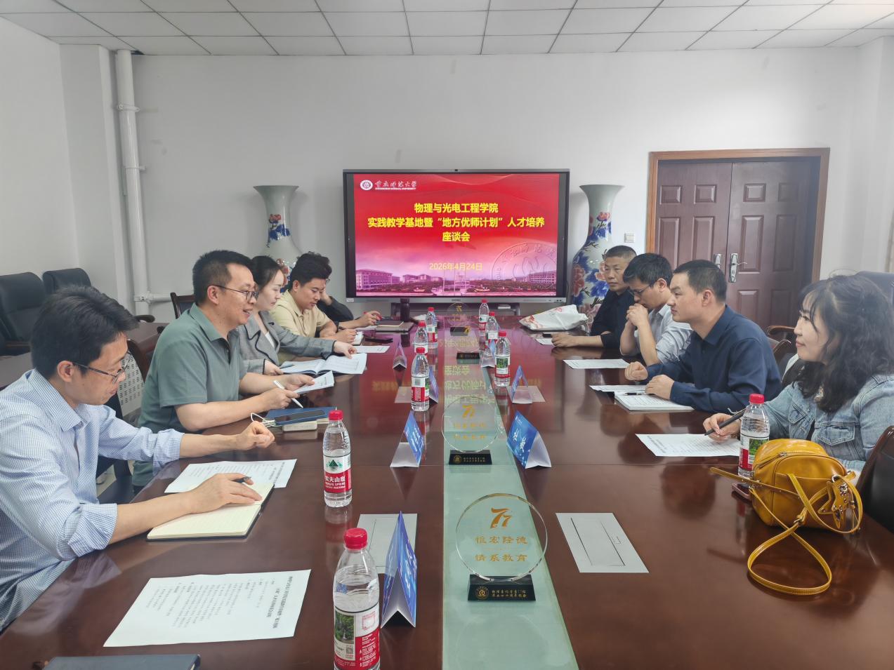 为深化校校、校企协同育人机制,完善实践教学体系,推动人才培养提质增效,4月24日下午,重庆师范大学物理与光电工程学院在集贤楼524会议室召开实践教学基地暨“地方优师计划”人才培养座谈会。会议由学院副院长罗海军主持,奉节永安中学校副校长李英奎、重庆市第三十七中学校教务处主任青建福、课堂中心副主任杜敏、重庆元三数字科技有限公司总经理陈松鑫,以及学院副书记曾艳、院长助理曾召益、光电系副主任皮明雨、物理系副主任牟映坪、教科办主任王向民等相关负责人参会。