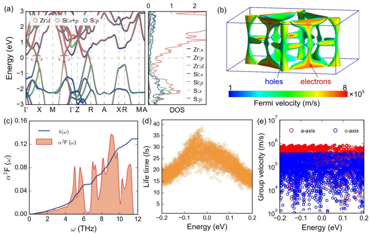 拓扑半金属因具备独特的电子结构和优异的性能,在量子技术与能量转换领域展现出潜在应用价值,但其非平凡拓扑能带结构与热输运特性之间的基础关联尚未得到明确阐释。传统认知中,金属或半金属的热输运通常以电子贡献为主,可通过维德曼-弗兰兹定律结合洛伦兹数来估算电子热导率(κe),然而在钨、铍等部分金属体系中,该定律因晶格热导率(κL)异常显著而失效。同时,简谐近似方法难以准确描述强非简谐材料的声子行为。对于ZrSiS这类存在较强晶格非谐性的拓扑半金属而言,其κL的实际贡献情况亟待深入探究,且这种非谐性对其热输运的具体作用仍需系统分析。